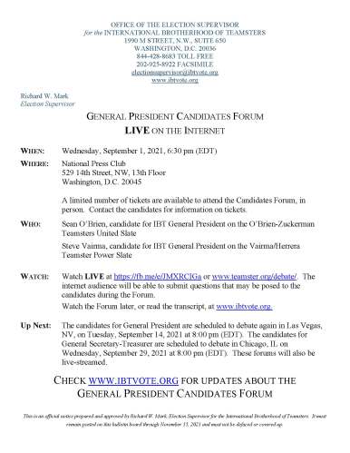 Published August 23, 2021 at 1700 × 2200 in IBT Election Notices‘Candidates Forum Notice Bulletin Board Posting 8.19.21 ENG’ ‹ Back